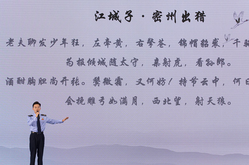 “我相信我们在座的各位,在面对困难挫折的时候都能像苏轼那样,都能像这首《江城子·密州出猎》那样,坚定‘稳’的内心,拿出‘狂’的力量,‘锦帽貂裘,千骑卷平岗’,保持‘越是艰险越向前’的英雄气概,保持‘敢叫日月换新天’的昂扬斗志,‘挽弓如满月’,以高歌的姿态迈越每一关考验,将赤子热心奉献给我们的党和祖国。”来自眉山市税务局的唐艺航分享了苏轼的《江城子·密州出猎》。活动结束后,他说:“希望将眉山的东坡文化分享给更多的青年,优秀传统文化滋养更多税务青年,坚定文化自信,筑牢信仰之基,勇担时代使命。”