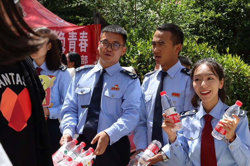 “加油!你一定能成功!”“把握机会,改变人生!”……一个微笑,一份祝福,队员们在考点外为进场的考生加油鼓劲,引导考生们有序进场,协助警察维护考场周边秩序,暖心细致的服务收获了陪考家长的一致点赞。
