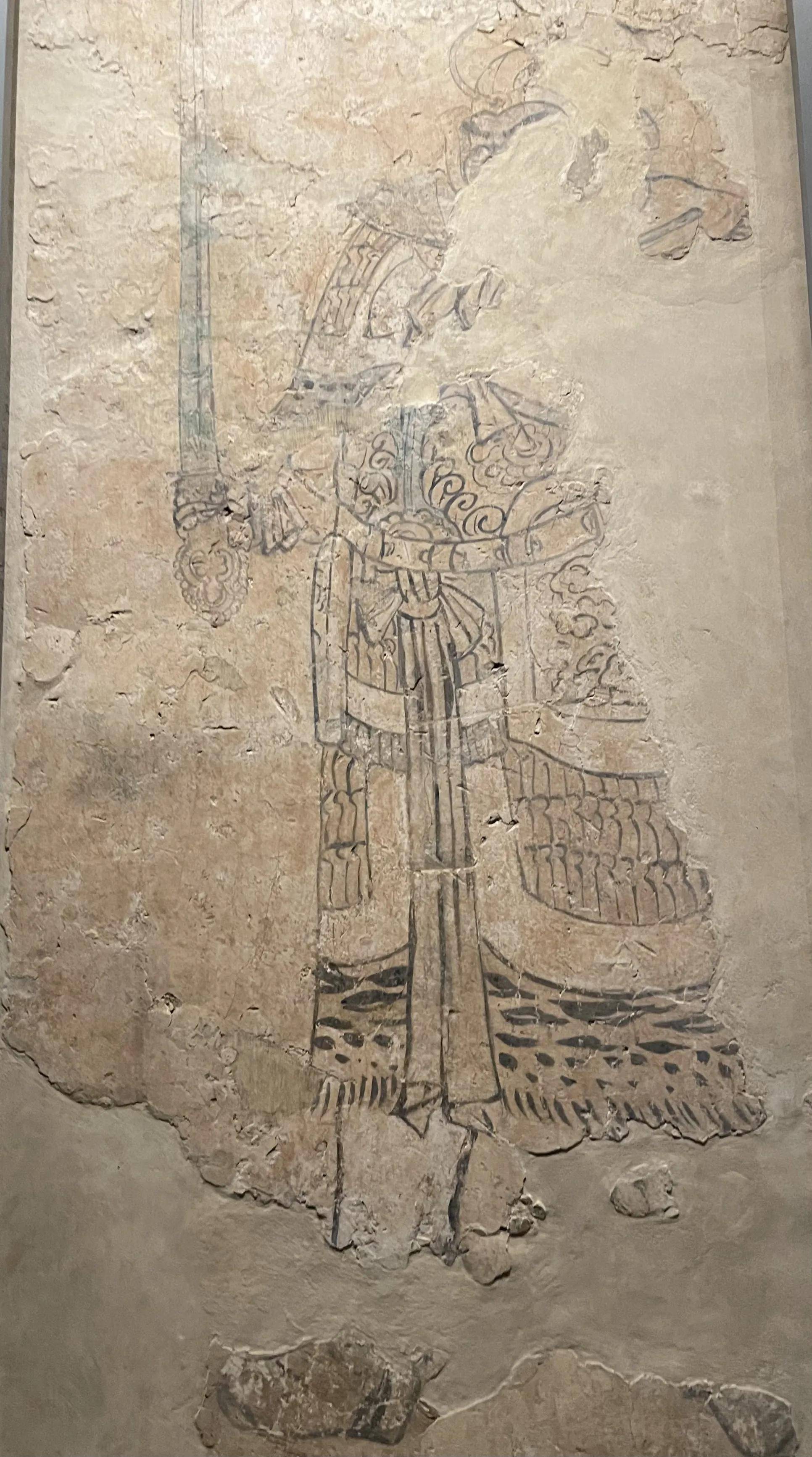 同时发现,富弼墓的墓室周壁及顶部原先都绘有壁画,但由于年代久远及盗掘破坏,大部分壁画已不复存在。现存壁画包括:玄武图:位于墓顶北部。守门武士图:甬道西壁上存有一壁画,画的是一浓眉大眼的武士。右侧仪卫身高1.70米,浓眉大眼,头戴黑幞头,身着红袍,腰系玉带,手持长剑,威风凛凛。
