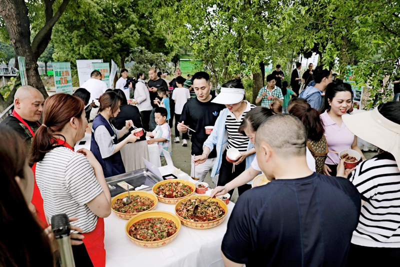 活动现场,垂钓基地化身多元体验空间。在“渔乐竞技场”,垂钓挑战赛吸引近30余名钓手同场竞技,岸边观战区同步开设家庭垂钓体验课,新手钓客在专业指导下成功收获开竿鱼;十八味美食市集携手艾家友园、空港阳光、聚极大龙农庄等辖区11家餐饮商家推出招牌美食齐聚现场免费品尝,游客感慨舌尖与视觉双丰收;水上高尔夫,随着清脆的一击,小白球划过天空,落入远处的水域,激起层层涟漪别有一番乐趣;亲子互动区推出的鱼拓画制作、鱼灯手作等手工坊,更让家庭游客沉浸式感受到不一样的文化体验。“大人小孩工作学习一个星期,也需要放松一下,在这体验钓鱼,既锻炼小朋友耐心专注度,还可以体验制作手工、品尝美食、桑葚采摘等,很适合一家人玩,总体感觉很不错。”社区居民刘女士说。
