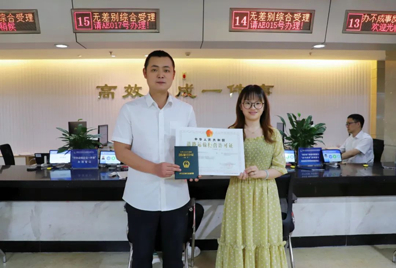 “没想到变更营业执照后,许可证自动就办好了!”7月3日,成都金运铁驰物流有限公司负责人刘女士在青白江区政务服务中心领取《道路运输经营许可证》时连连称赞。