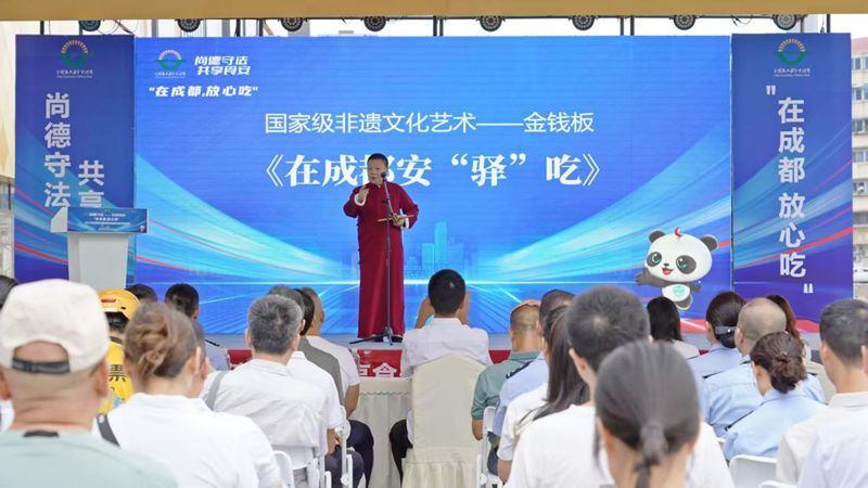 “世运会来啦,在成都,放心吃,食安护航味更香;齐努力,同担当,让这烟火满城芳……”7月25日,微风轻漾,成都市龙泉驿区万达广场1号门人流如织、摩肩接踵,难得的清凉为市民现场了解食品安全知识更添舒适。这边,非遗传承人手持金钱板“嗒嗒”作响,“选购食品要细心、三期标签看分明”的唱词刚落,围观市民便齐声叫好;那边,往来市民排队拿着刚买的新鲜水果蔬菜体验食品安全快检;舞台旁,孩子们踊跃进行答题,争先恐后地参与互动游戏……龙泉驿区2025年食品安全宣传周启动仪式,在这热腾腾的烟火气里盛大开启。