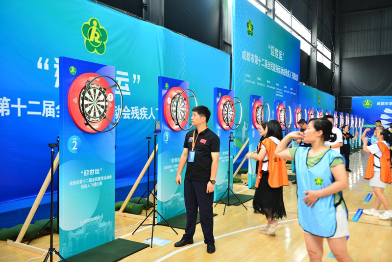 7月24日,“迎世运”成都市第十二届全民健身运动会残疾人飞镖比赛在崇州市体育中心隆重开幕。此次运动会设有肢体男子组、肢体女子组;听力男子组、听力女子组;轮椅男子组、轮椅女子组,共计六个组别的飞镖比赛,有来自成都市23个区(市)县160余名残疾人运动员参加。