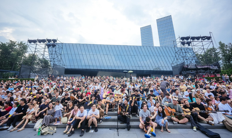 “以前总听说怡心湖美,今天一来,不仅看了演出,还亲手体验了非遗竹编,值回票价!”成都市民陈先生的感慨道出了活动的魅力。这场以“城市慢生活”“音乐沉浸体验”为主题的盛宴,打破了传统文旅活动的边界——观众既是演出的欣赏者,也是非遗的体验者、消费的参与者。国际友人的加入更让这场盛宴有了“国际范儿”:澳大利亚学生EUAN MALCOLM FORBES在敲打中国鼓后直呼“震撼”,俄罗斯学生SOFIA ZVONAREVA把玩着非遗香包笑称“想把这份美好带回国”。