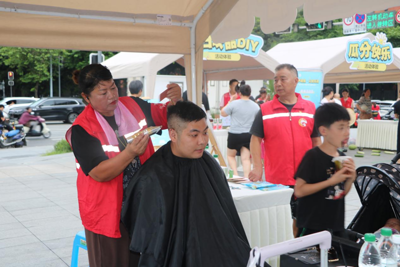 “便民服务区”同样人气高涨,免费理发、爱心义诊等服务摊位前,居民们自觉有序地排队,凭“建议提交凭证”兑换服务。据统计,现场共提供便民服务50余人次,让居民在参与社区治理的同时,享受到了实实在在的便利。“没想到提个建议还能免费理发,这样的活动真是太贴心了!”刚理完发的李大哥满意地说道。这种“你提建议・我送服务”的联动模式,不仅大大提升了居民的参与积极性,更强化了基层治理与民生服务之间的紧密联系。