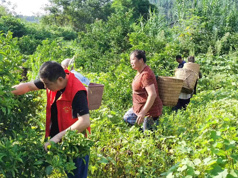 陈思文(左一)与村民采收枳壳。吴坤忠/摄