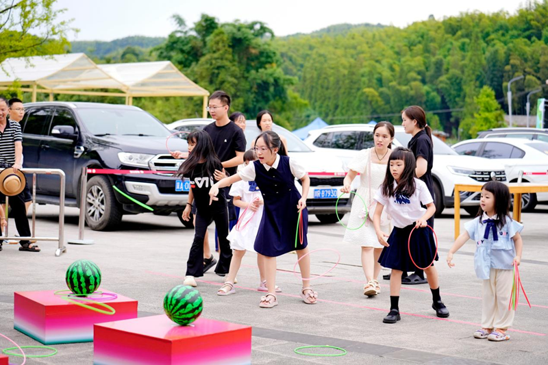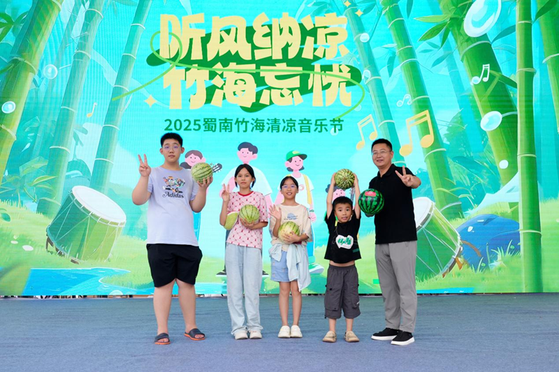 音乐节期间,“蒙眼吃瓜”“西瓜捕手”等特色互动项目,成为连接游客与地方生态的纽带。在“蒙眼吃瓜”互动区,游客需凭借感官辨识、品尝本地西瓜,既契合夏日消暑主题,又让游客直观感受蜀南竹海的生态物产。据统计,仅8月17日(周六)单日,该项目参与人数便突破2000人次,现场排起的长队,折射出游客对沉浸式体验的旺盛需求。