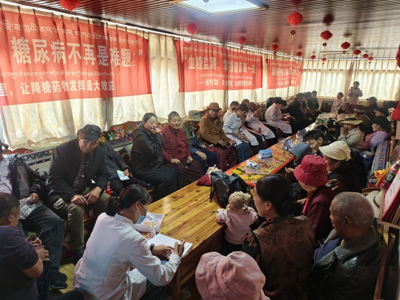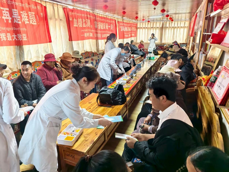 在辽阔的雪域高原,传统高热量饮食曾帮助藏族群众抵御严寒、适应环境,糖尿病发病率长期较低。然而,随着我国经济飞速发展,藏区居民生活方式和饮食结构都发生了改变,高原居民血糖异常人群逐渐增加,不少人在不知不觉中出现血糖升高,甚至已发生并发症而未察觉。部分群众由于缺乏科学防治知识或存在“重治疗、轻预防”的观念,错过最佳干预时机,甚至引发心脑血管、肾脏等严重疾病,给生活和健康带来隐患。