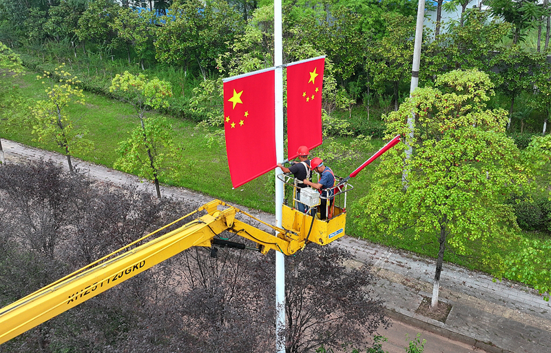一抹抹“中国红”,一颗颗爱国心。熠熠生辉的国旗不仅装点了城市街道,更凝聚了帅乡儿女对祖国深切的祝福。接下来,乐至县园林管理所将持续做好国旗的日常维护与管理,加强巡查巡检,及时处置国旗歪斜、破损等情况,确保国旗整洁、舒展,营造喜庆祥和的节日氛围。(文、图/陈欣、孙小红)