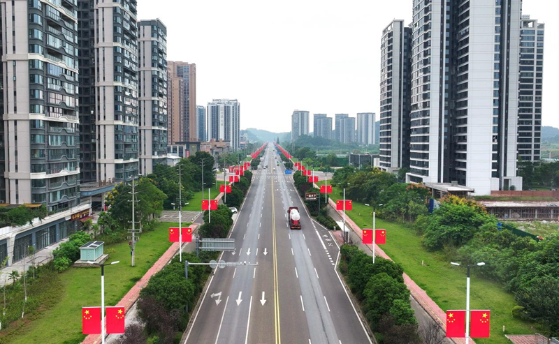 近日,四川省资阳市乐至县城区多条主干道路灯杆上,悄然挂起了一面面鲜艳的五星红旗。醒目的“中国红”成为城市中一道亮丽的风景线,不仅为城市增添了浓厚的节日氛围,更点燃了市民心中炽热的爱国情怀。