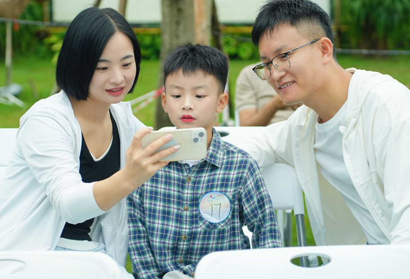 五谷杂粮不仅是餐桌上的食材,更成为孩子们手中的“艺术颜料”。在手工制作区,红豆、绿豆、小米、黑米、玉米糁等食材整齐摆放,孩子们在家长的协助下,发挥想象力拼贴出稻田、稻草人、小火车等充满田园气息的画作。“平时工作繁忙,难得有这样的机会和孩子深度互动。”家长陈晓梅展示着亲子合作的作品,脸上满是笑意:“孩子在拼贴过程中不仅锻炼了动手能力,还主动问每种粮食的生长过程,真正理解了‘每一粒粮食都来之不易’,这种沉浸式教育比说教更有力量。”
