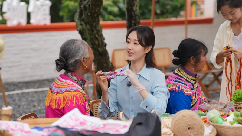 节目中,主持人王嘉宁小心地将淡黄色玉米外衣粘贴在白T恤上,不禁感慨:“吃玉米时我会剥掉的东西,原来它还可以创造其他的价值。”另一旁,中国人民大学教授谷曙光专心致志地将白菜叶连缀成一条别致的肩搭,和大家分享“静者心多妙,先生艺绝伦”的创作哲学。演员陈乔恩则将当地花草装点在T恤和头冠上,为帆布包添上一抹手绘的爱心。