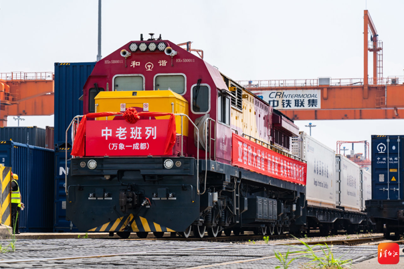 6月12日,亚蓉欧大通道“澜湄蓉”鲜果专列鸣笛驶入成都国际铁路港