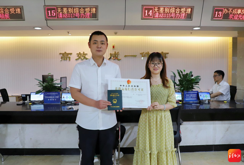 7月3日,成都金运铁驰物流有限公司负责人刘女士手持崭新的许可证,由衷地为青白江的交通运输政务服务点赞
