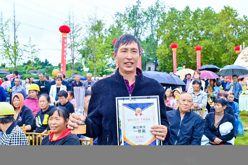 颁奖仪式上,“树王”一等奖由丰裕镇敲钟村种植户王显富摘得。据现场测定,他的获奖果树不仅树形优美、冠幅宏大、通风透光性极佳,更创下单株挂果1200多个、预计株产量330斤的亮眼成绩,成为雁江蜜柑“丰产优质”的标杆。“树王”二等奖由丰裕镇人民村的王莉琴、新华村的李秀芬获得,三等奖则由敲钟村王显彬、联合村罗勇、祠堂村刘培林收入囊中。