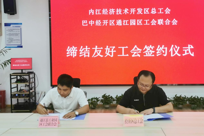 近日,内江经开区总工会与巴中市通江县工业园区工会联合会正式签订《缔结友好工会框架协议》,通过工会协作搭建起结对帮扶新桥梁,为两地协同发展注入强大的工会力量。