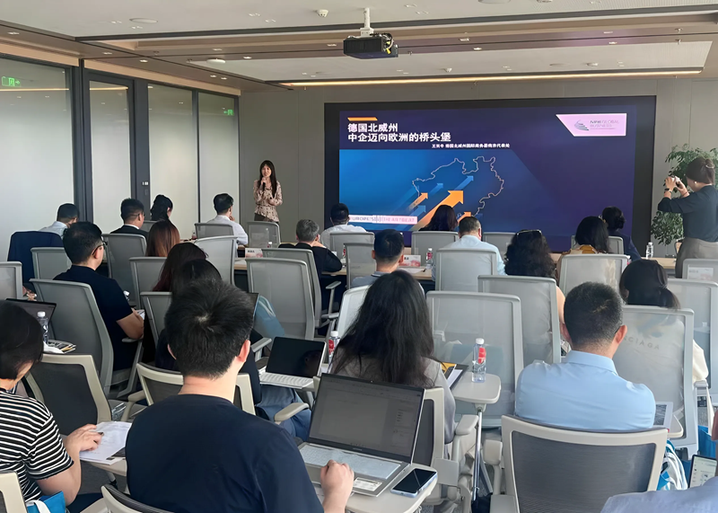 作为北威州负责对外经济促进合作的官方机构,德国北威州国际商务署总部位于德国杜塞尔多夫,在中国设有南京、北京和广州三个代表处,为中国企业去德国投资布局及北威州企业的在华发展提供专业服务。其华东华中西南大区主任王笑冬现场揭秘北威州的区位优势:“目前中国在德国投资落户的企业总量中,北威州占据三分之一。”王笑冬称,凭借充满活力的经济环境、独特的基础设施和具有战略价值的地理位置,北威州贡献了德国1/5的经济总量,坐拥欧洲最密集的物流网络和最集中的工业集群,堪称“Europe's Heartbeat欧洲的心跳所在”。王笑冬介绍称,作为“蓉品出海”的重要窗口,北威州已吸引以新能源、智能网联等产业为主的近1200家中企落户。