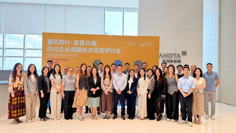 9月25日,由德国北威州国际商务署南京代表处与泰和泰律师事务所联合主办、成都市投资促进局支持的“蜀风西行·莱茵共潮”四川企业德国投资运营研讨会在蓉召开。泰和泰律师事务所高级合伙人、四川省一带一路经贸促进会监事长、四川省应对贸易摩擦工作站(联合站)主任马春燕出席会议并致辞。