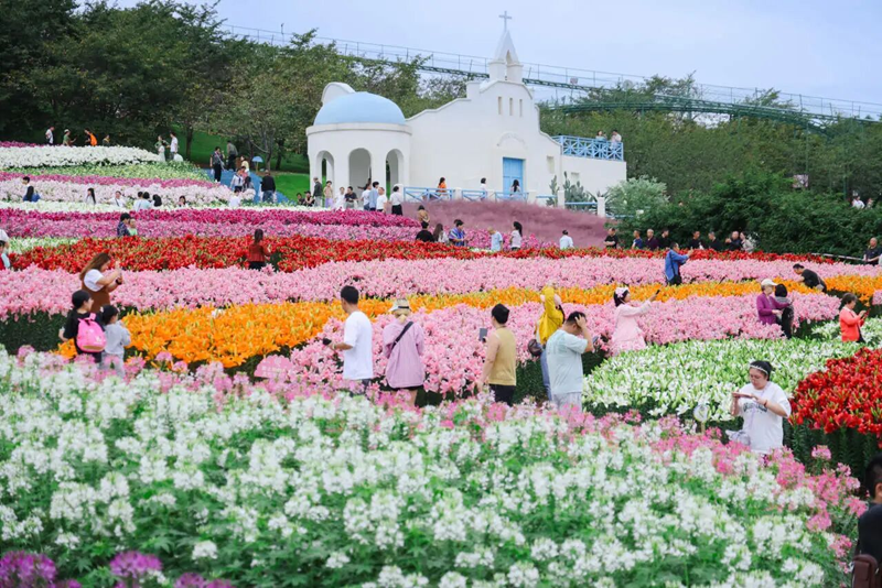 漫花庄园聚焦“双节赏花+夜间沉浸”,成亲子游热门地。粉黛乱子草与百万株百合盛放期叠加,数百米粉色花甸搭配高空玻璃桥,每日吸引大批家庭打卡;夜间升级场景,LED灯带勾勒古堡、水幕投影随乐变换花景,新增星空露营、文创市集与露天电影,构建沉浸式夜间消费场景。