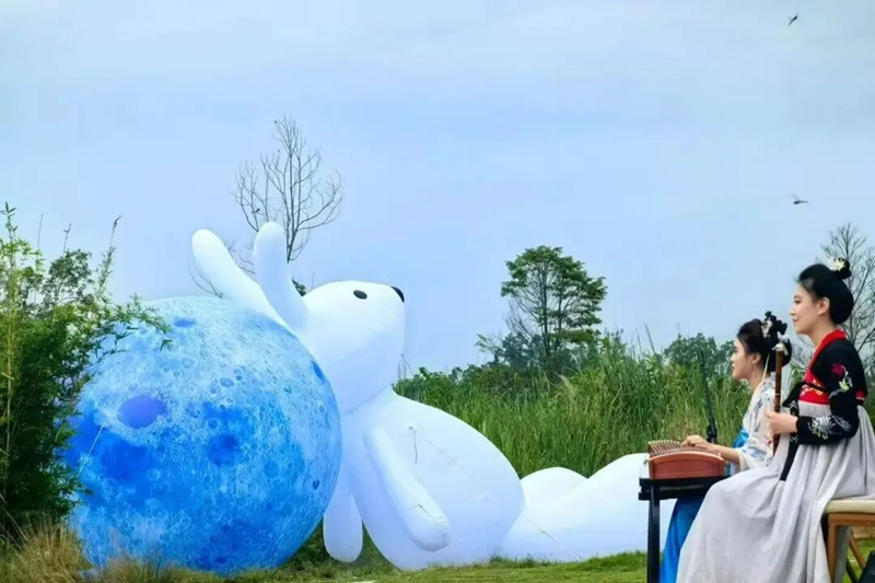 文化活力更体现在非遗与潮流的碰撞中。罨画池博物馆举办的“崇庆州文庙传统文化季”获央视新闻频道关注,非遗藤编鱼灯巡游带动场馆客流量同比激增超220%;道明竹艺村汇聚50余位匠人开展竹编技能大赛,“山湖集”市集两度登陆央视,吸引游客超21.61万人次。从“音乐+古镇”的街子IP,到“天府熊猫林里・月满丰收季”的元通创新,崇州让传统文化在新时代焕发出新活力。