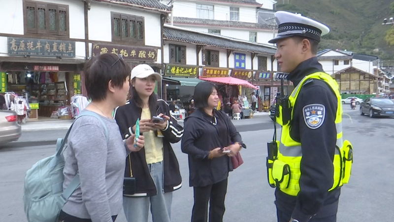 执勤民警化身“多面手”,既是交通秩序守护者,更是游客“暖心后盾”。在牟尼沟隧道出口,民警及时为高反游客联系医疗服务点;在古城墙周边,为外地游客规划游览路线;夜间开展专项行动,严厉打击酒驾醉驾等违法行为。“看到‘荧光绿’就踏实了!”来自重庆的游客王先生感慨,交警的及时救助让他的高原之旅化险为夷,这份坚守让“安全抵达”成为“好客之州”最坚实的承诺。