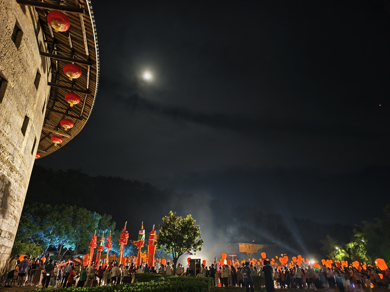 作为世界文化遗产地,永定土楼本年度国庆档推出“非遗文化狂欢节”系列活动,形成“日间演艺+夜间光影+互动体验”的全时段文旅供给体系。福建土楼王子景区每日上演高跷戏、中幡表演、客家舞龙等非遗项目,7天累计开展420场核心演艺,其中《客家舞龙》表演单日吸引超3万人次驻足观赏。初溪土楼古村落的“晒金秋”活动通过“晒物-晒景-晒文化”三维展示农耕文明,夜幕降临时分的“千灯放飞”仪式更以3D裸眼灯光秀演绎“众星拱月”奇观,成为游客争相打卡的网红场景。