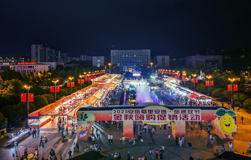 9月25日至27日,安岳县在全市率先推出“柠都药香·夜话岐黄”2025中医药文化夜市;9月29日晚,2025年四川省“万人赏月诵中秋”集中展演资阳市分会场活动在安岳璀璨启幕;9月29日至10月8日,“蜀里安逸·岳遇双节”金秋嗨购促销活动同步启动,近300个展位,现场销售额超300万元,带动周边消费超千万元,进一步释放了假日消费潜力。