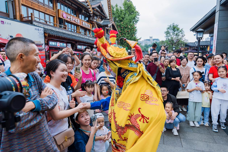 “没想到在景区能看到这么专业的戏曲演出,这趟双节旅行太值了!”广大观众尤其是外地游客纷纷表示。两场演出涵盖川剧绝活、传统曲艺等多种形式,台上台下频繁互动,线上直播更吸引数万网友同步观看,实现文化服务“线下有热度、线上有回响”。