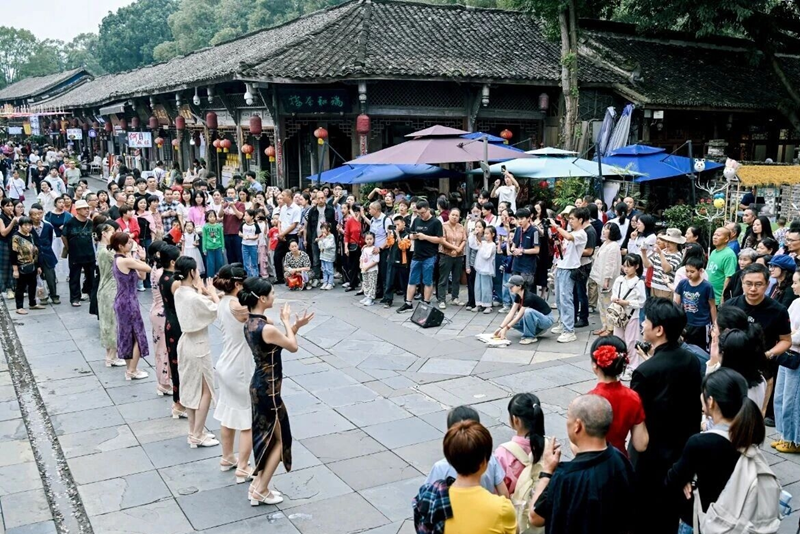 新场古镇的非遗游园盛会、成都西湖公园的潮玩生活节、幸福公社的艺术家主题活动同步发力,川剧变脸、古琴雅集、水上体验等多元业态让游客各得其所,尽显“雪山下的公园城市”多元魅力。
