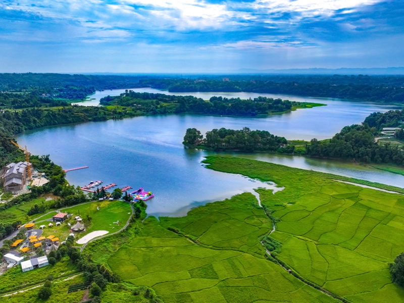 百丈湖不仅为游客带来了全新的滨水度假体验,更通过产业导入周边乡村发展注入了新动能。今年通过百丈湖公司与四川省农业大学水稻研究所和村民合作社合作模式,选育优质富硒水稻品种,通过210天养土,155天耕种,365天坚持,产出无化肥、无农药的优质滨湖大米,并在国庆前夕喜获丰收。此外,公司通过举办水上运动邀请赛,以及自驾集结等活动,带动茶叶销售、农家乐餐饮、民宿入住率显著提高。周边农家乐老板陈先生高兴的说:“通过公司举办活动我们半年的库存卖完了”。公司还与百丈湖村签订乡村振兴合作协议,优先培训和录用当地村民,让30余名村民实现了“在家门口就业”的愿望。