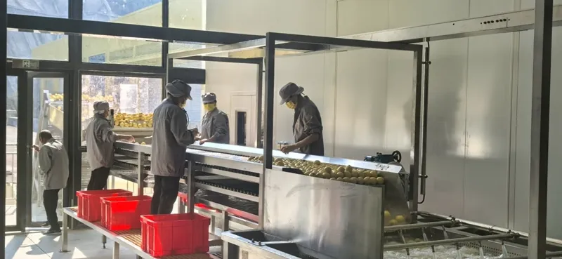 (员工正对柠檬果表皮进行清洗。易奎西/摄)