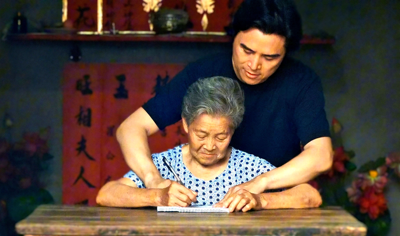 最动人的一幕,是“教母亲写字”。母亲因取快递只能按手印而感到卑微。彭强刚便连夜手绘“象形字帖”,把笔画比作“小树枝”和“玉米秆”。他宽厚的手掌握着母亲颤抖的手,一笔一划,没有一丝催促。“妈,不着急,我们慢慢写。您看,这一竖比昨天直多了。”