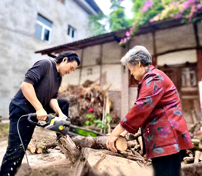 在花书房村,彭强刚成了老人们的“公共亲人”。送突发骨折的邻居就医,协助寻找走失老人,主动上门教老人们用微信视频与远方儿女“见面说话”……村民感慨:“强刚不仅对自己妈好,还带动了整个村的风气。现在年轻人回村,都学着他陪老人干活、聊天。”