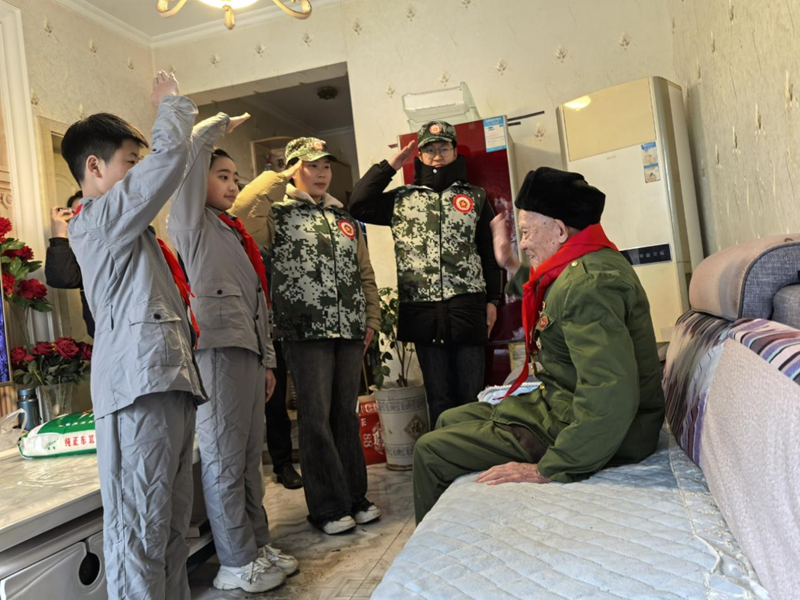 南溪区赵一曼老兵志愿服务队志愿者与南溪红军小学少先队员走访慰问抗美援朝老战士