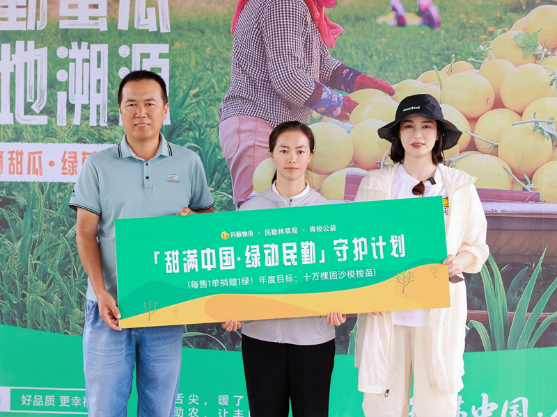 今年7月,辰颐物语联合民勤林业局和甘肃青梭公益,共同发起了“甜满中国·绿动民勤”守护计划。计划每售出1单民勤蜜瓜捐赠1棵梭梭树树苗,截止目前共助力民勤蜜瓜销售20万单。