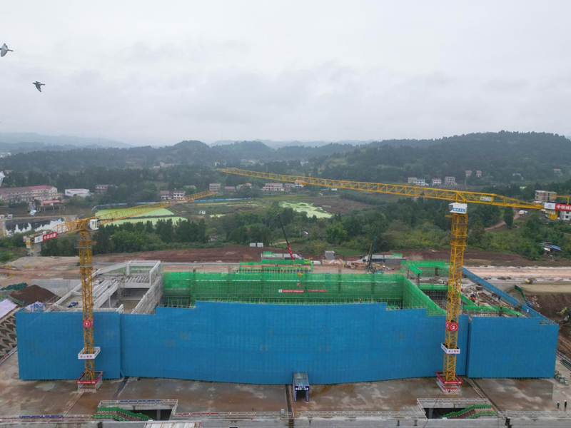 成渝中线高铁安岳站顺利完成主体混凝土结构封顶。赵彩萍/摄