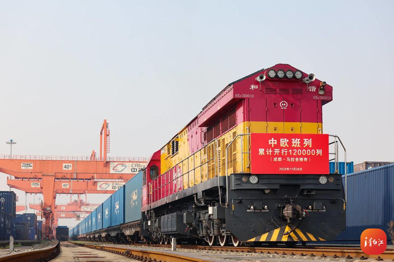 11月28日12时13分,装载红油面皮、火锅底料等四川特色食品和拼多多跨境电商商品的X8086次中欧班列从成都国际铁路港发出,开往波兰马拉舍维奇,最终将分拨至德国杜伊斯堡、法国里昂、比利时安特卫普等欧洲核心城市。这标志着中欧班列累计开行量突破12万列。
