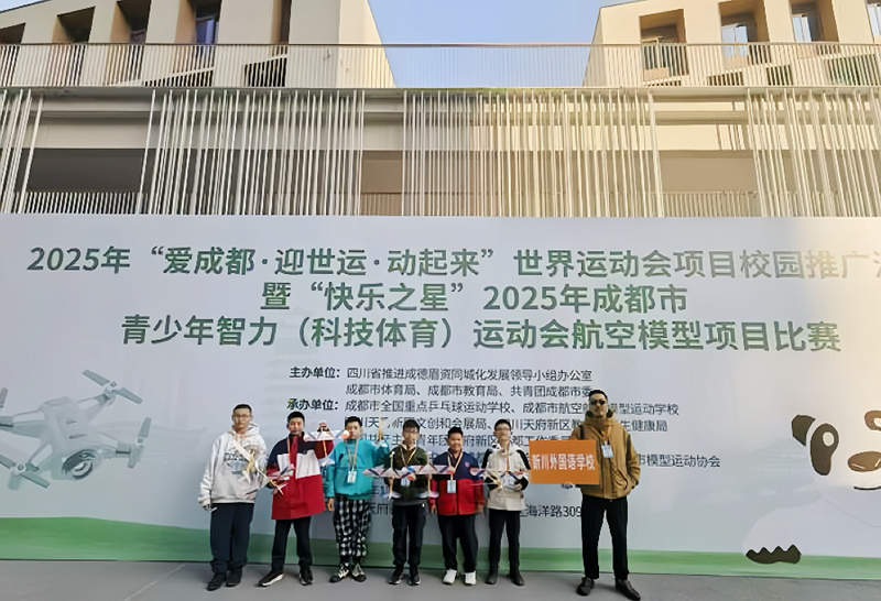 12月7日,2025年成都市青少年智力运动会(航模项目)大赛现场,全市数十所中小学600余名学生同场竞技,首次组队参赛的成都新川外国语学校3位同学竟一口气包揽了“橡筋动力飞机”(中学组)全市前三名,另外5名队员全员跻身前十,一战成名!