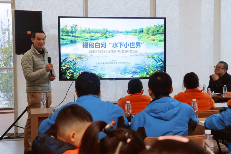 活动当天,主持人阐述了开展本次活动的背景与意义;成员学校代表作了《白河水生生物保护现状调查成果报告》专题汇报;水利部中国科学院水工程生态研究所副主任赵先富也应邀讲解水生生物保护的意义、本地物种特点及日常保护实践,为听众上了生动一课。
