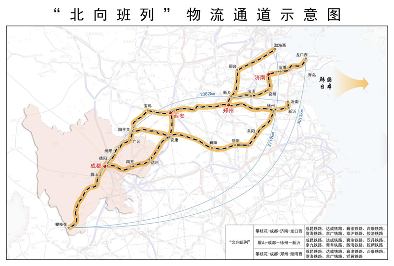 近年来,党中央、国务院高度重视运输结构优化和粮食安全保障,先后出台《有效降低全社会物流成本行动方案》《2024-2025年节能降碳行动方案》《交通物流降本提质增效行动计划》等一系列政策措施,提出“加快建设国家综合立体交通网,持续优化‘西煤东运’‘北煤南运’‘北粮南运’等多式联运系统”,推动大宗货物“公转铁”运输比例持续提升。在此背景下,川鲁两省携手打造的“北向班列”北粮南运通道,成为助力交通强国建设、保障国家粮食安全、促进绿色低碳发展的生动实践。