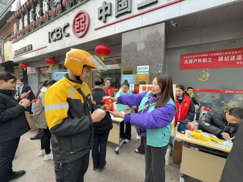 冬日蓉城,暖意涌动。1月15日,成都市双流区九江街道蛟龙工商银行工会驿站内热闹非凡,“关爱户外职工・驿站送温暖”2026工会驿站暖心服务日活动正式启幕。九江街道总工会聚焦快递员、外卖配送员、网约车司机等新就业形态劳动者的冬季需求,送上装满关怀的“暖心大礼包”,以精准服务传递工会“娘家人”的温暖,这也是四川各级工会扎实推进新就业形态劳动者暖心服务行动的生动缩影。