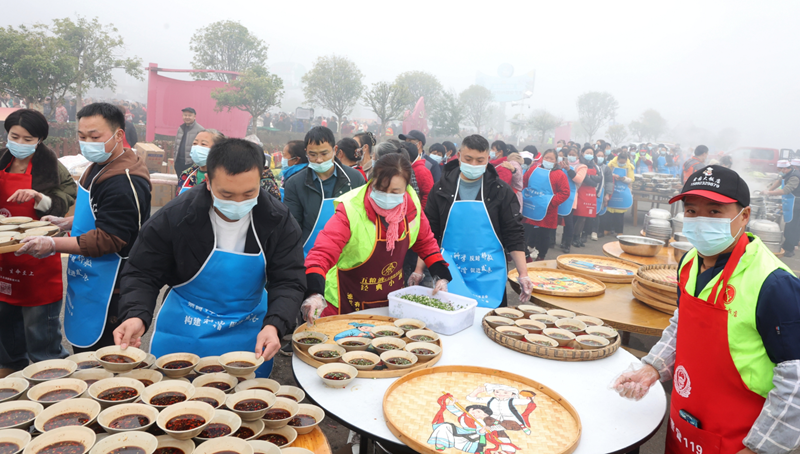 品的是实实在在的获得感。近午时分,第一轮宴席开席。村民王大爷凭券入座,碗里是冒着热气的“团年饭”。“今天的饭菜合胃口,我们村里的条件也是越来越好了,路也修了,路灯亮到院坝,厕所改造了,家门口就是景区,我六十多了,平时还能在周边做点轻松活路,补贴家用,日子越来越安逸了。”