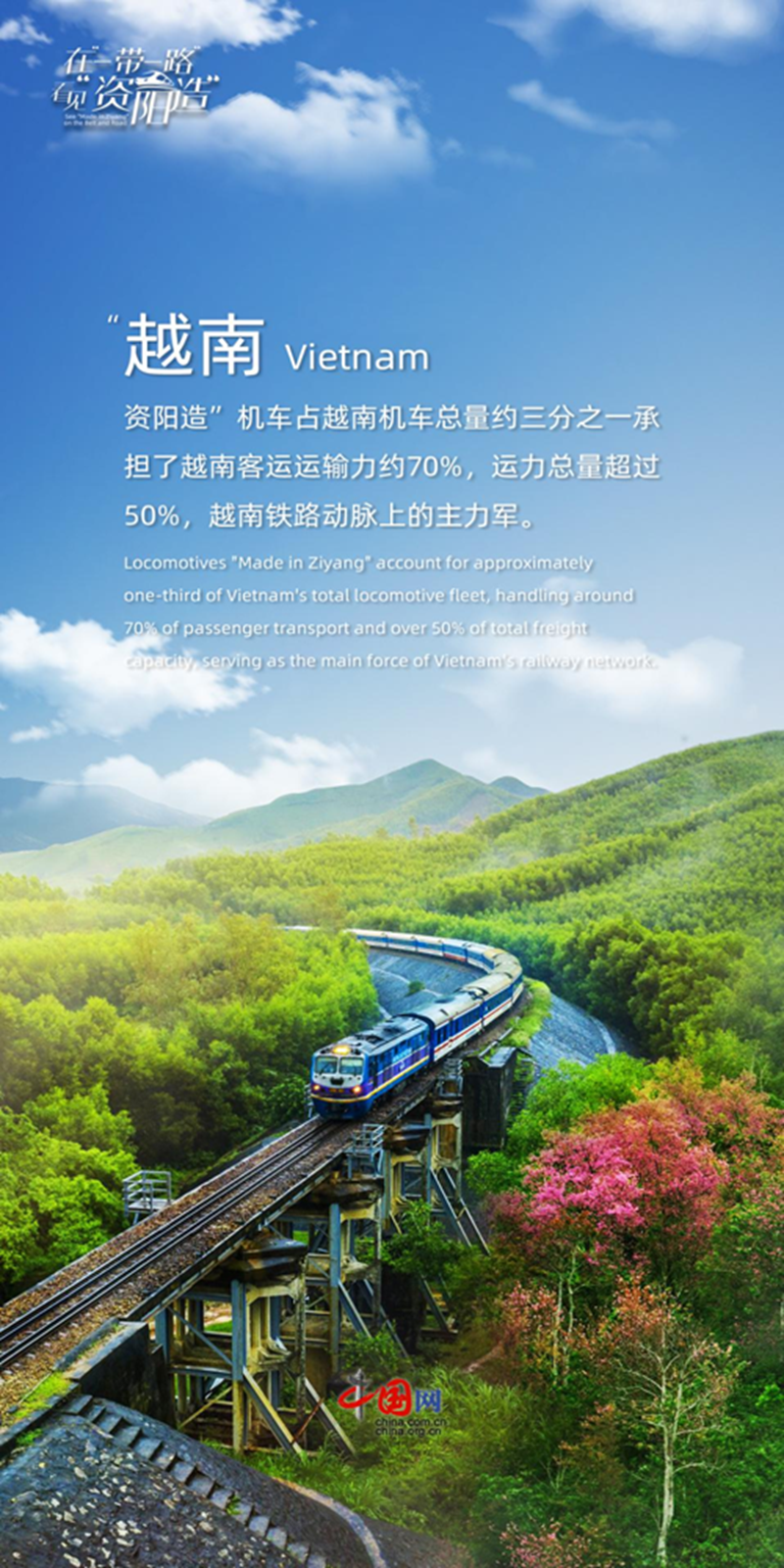 据公开信息,中车资阳的“资阳造”机车正驰骋全球,该公司已向35个国家出口1200余台机车。在越南,“资阳造”机车占当地总量约三分之一,承担超50%的铁路运输任务。